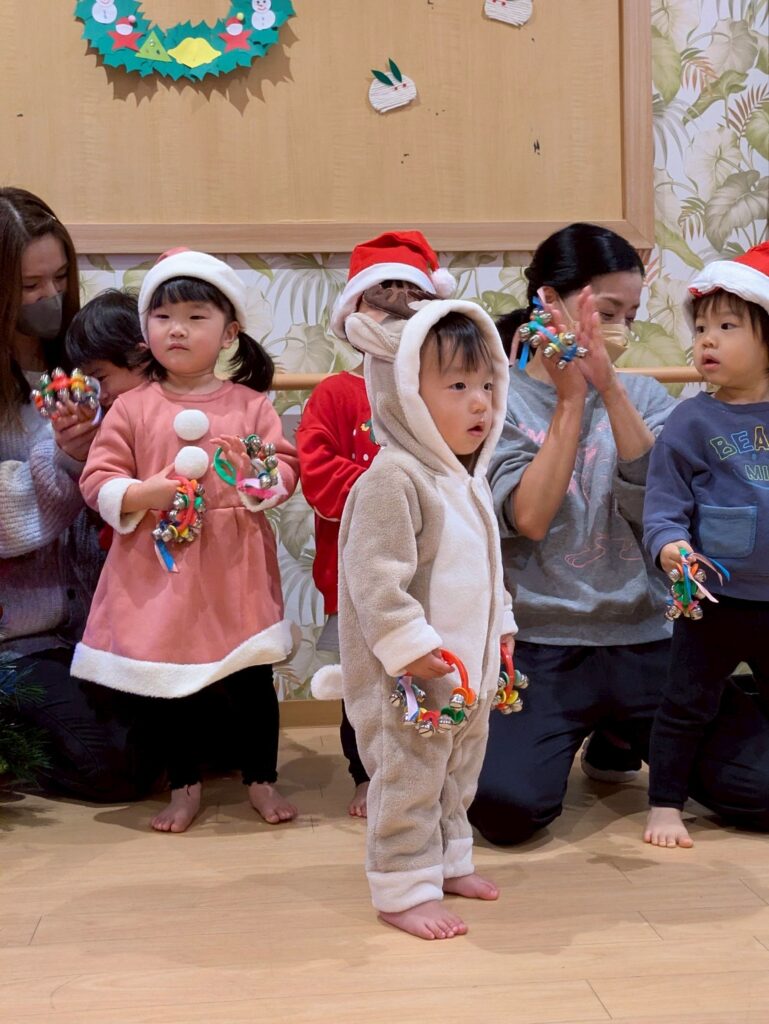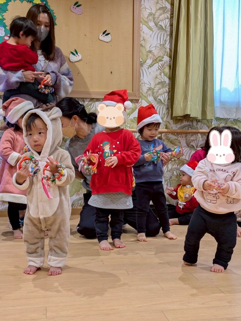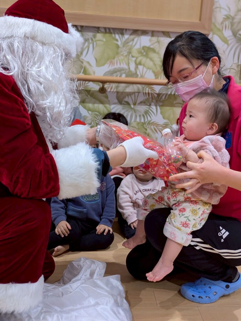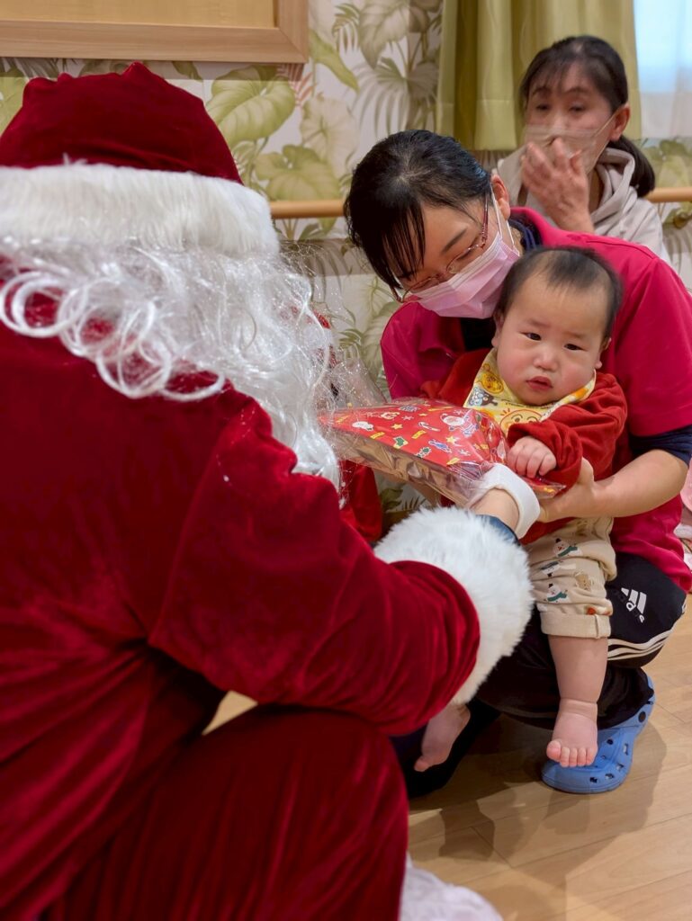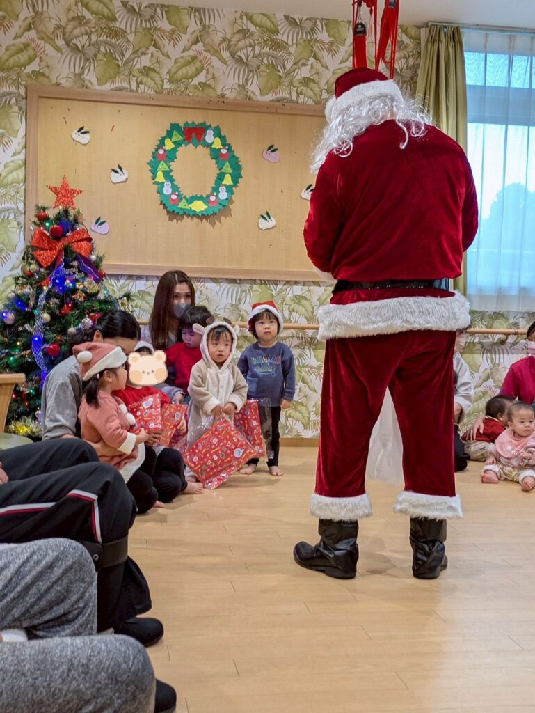 大きな袋を持ったサンタクロースが登場すると子どもたちは大喜び‼️